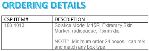 Xact M15R (15mm dia) extremity ring markers are engineered with increased radio-density are perfect for marking areas of interest on extremity X-rays. They are often used to mark problematic screws and other hardware prior to surgery, identify areas of digital pain, localize foreign bodies, etc. For a similar but smaller product, please see marker M10R.
