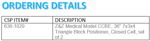 Z&Z Medical Exclusive Closed Cell Sponges are made from a lightweight, radiolucent, non-porous foam. The perfect solution for any positioning need! These positioning sponges are entirely fluid resistant, easy to clean and extremely durable! Featured in a non-coated, premium charcoal grey color.