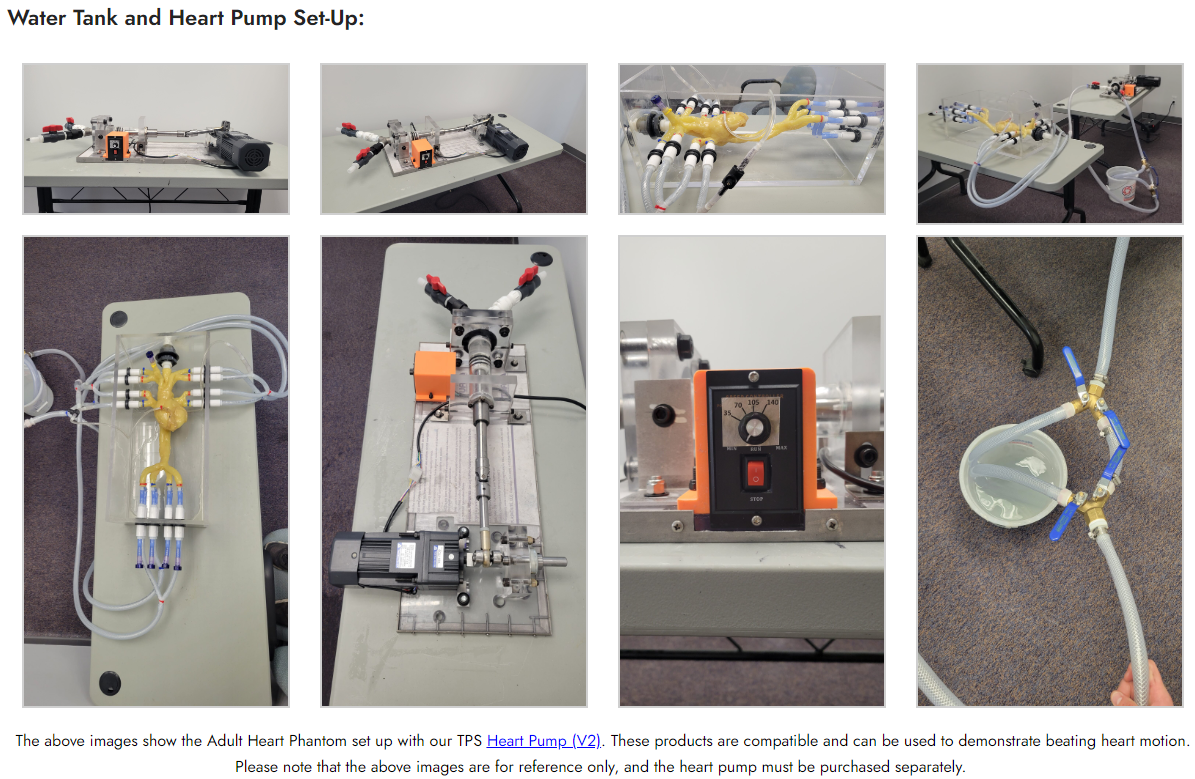 Note: This product comes with a water tank, as shown in the images above. The water tank helps researchers to mount the heart properly and achieve the correct performance of the phantom in terms of the view of internal structures and heart motion.