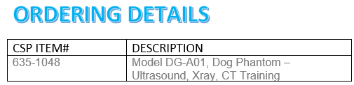 The phantom is compatible with Ultrasound, and X-RAY/CT. It has all the right features to be an ideal teaching tool for sonographers, radiographers, veterinary residents, and other vet professionals.
