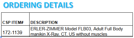 ERLER-ZIMMER Model FLB03, Adult Full Body manikin X-Ray, CT, US without muscles