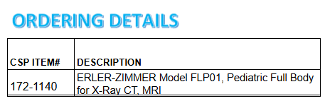 ERLER-ZIMMER Model FLP01, Pediatric Full Body for X-Ray CT, MRI