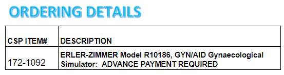 The full size female adult lower body gives students and educators a graphic experience in vaginal speculum examination, bi-manual pelvic examination, IUD insertion techniques, diaphragm sizing and fitting, uterine sounding, and viewing of normal and abnormal cervices.