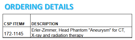 ERLER-ZIMMER Model NLP1510, Head phantom “Aneurysm” for CT, X-ray and radiation therapy