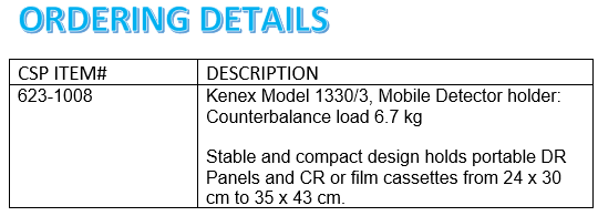 - Holds portable DR Panels and CR/film cassettes from 24 x 30 cm to 35 x 43 cm.