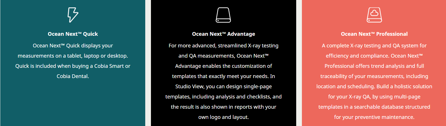 Whether you want a swift, intuitive application for routine controls, or a customized application with workflow, automatic tests, and traceability, our Ocean Next™ software offers you an array of possibilities. Still not sure? Check out the comparison grid below.