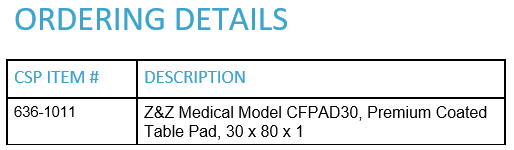 - Closed cell Foam Pad – This unique pad is manufactured with a Poly Vinyl Nitrile foam which is a closed cell foam but more pliable and offers excellent patient comfort without bottoming out. There is no need for a thicker foam due to its inherent density. There is no other table pad on the market with this type of foam.