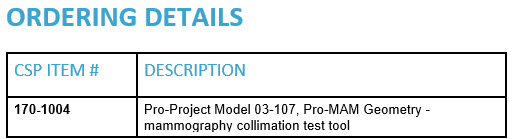 This test device was developed to provide the user with a convenient, quick and accurate way of testing collimation of mammography units. It is very simple to use. Instead of using all those hard-to-find coins, you only use our test tool.