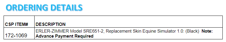 The Replacement Bundle for the Equine Simulators includes all consumables except the skin (sold separately). Replacement Bundle works for both the Equine...