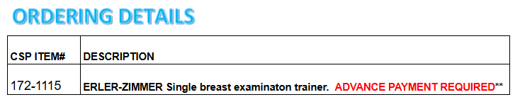 The Single Breast Examination Trainer includes four soft (skin color) nodules that represent normal tissue; three medium (white) lumps; and four hard (red) lumps, including a fixed-wall tumor. Lumps and nodules vary in size from 1-3 cm, are round and irregular in shape, representing both cysts and malignant tumors. Also included are baby powder, soft carry case, and instruction card.