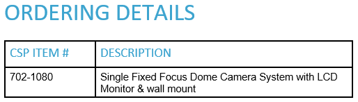 - Single Fixed Focus Dome Camera System with LCD Monitor & wall mount