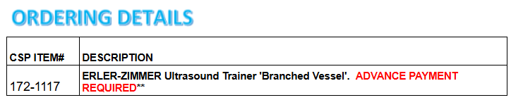 This trainer offers the possibility of scanning and puncturing a blood vessel with a diameter of 6 mm which branches into two vessels with a diameter of 3 mm.