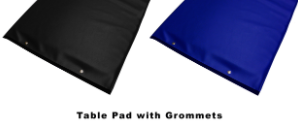 Standard table pads feature tapered ends with two brass grommets (eyelets) at each end for hanging storage. Table pads are radiolucent and offer easy cleaning between patients with any mild cleaner or germicide.