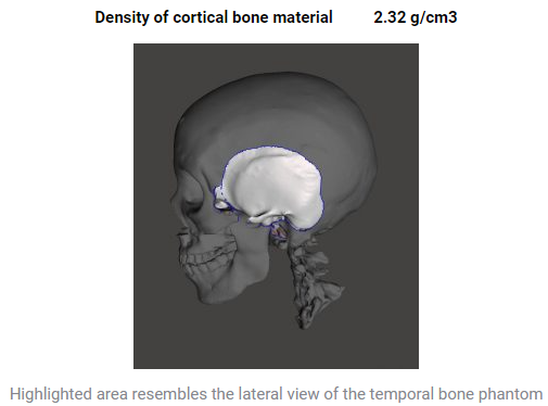 Temporal bones of the head phantom are small phantoms with a three-layered bone structure similar like an actual skull bone (cortical bone on top and bottom and diploe in the middle.).