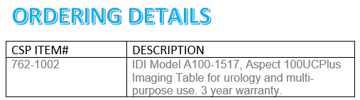 The 100UC Plus is a full-function mobile urology table, featuring motorized four-way travel, elevation, and Trendelenburg Tilt.