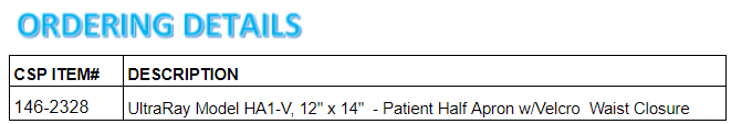 UltraRay Model HA1-V, 12" x 14" - Patient Half Apron w/Velcro Waist Closure