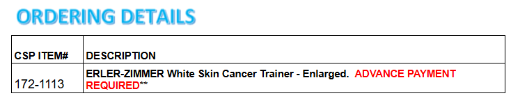 The Skin Cancer Trainer includes trainer, sturdy base, two-sided informational key card, easel, and storage box.